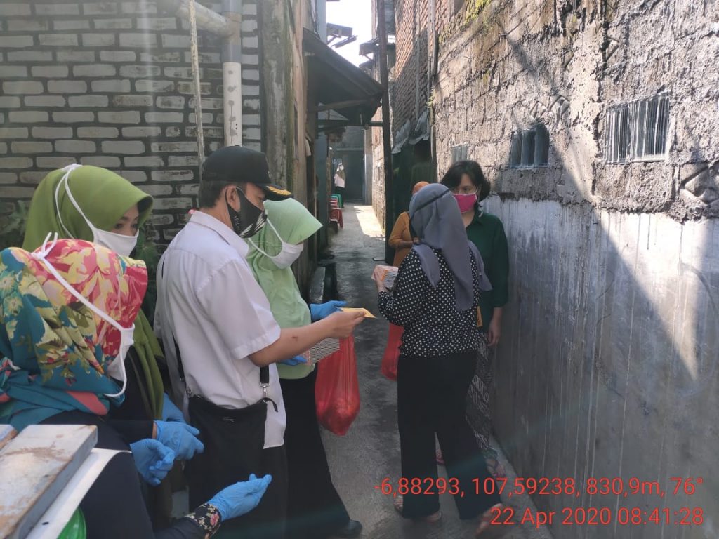 Bapak Lurah Cipedes H. Dedi Rustandi SH bersama Donatur Masjid Al-Fitroh membagikan sembako gratis kepada jamaah masjid dan warga sekitar, karena terdampak kebijakan “Work From Home” dan tinggal di rumah akibat wabah virus corona (Covid-19) bertempat di Aula RW 01 ,Rabu (22/4/2020).