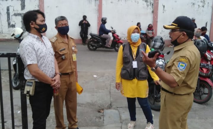 Dari kiri ke kanan, (Petugas kepolisian, lurah Padasuka, TKSK, serta Sekcam Cibeunying Kidul), sedang membahas teknis penyaluran BST untuk menghindari kerumunan warga